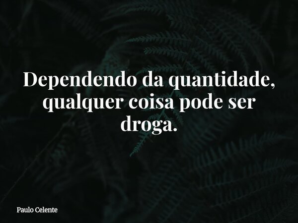 Dependendo da quantidade, qualquer coisa pode ser droga.