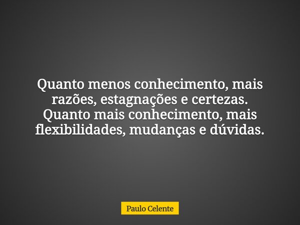 Quanto menos conhecimento, mais razões, estagnações e certezas. Quanto mais conhecimento, mais flexibilidades, mudanças e dúvidas.