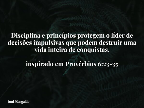Disciplina e princípios protegem o líder de decisões impulsivas que podem destruir uma vida inteira de conquistas. inspirado em Provérbios 6:23-35