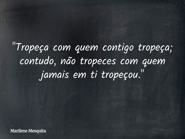 "Tropeça com quem contigo tropeça; contudo, não tropeces com quem jamais em ti tropeçou."