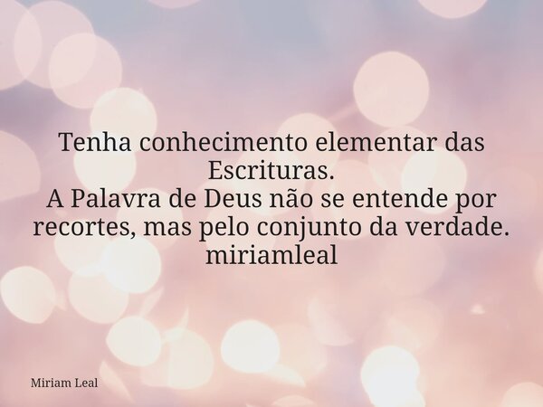 Tenha conhecimento elementar das Escrituras. A Palavra de Deus não se entende por recortes, mas pelo conjunto da verdade. miriamleal