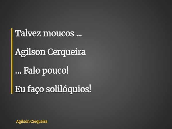 Talvez moucos ... Agilson Cerqueira … Falo pouco! Eu faço solilóquios!