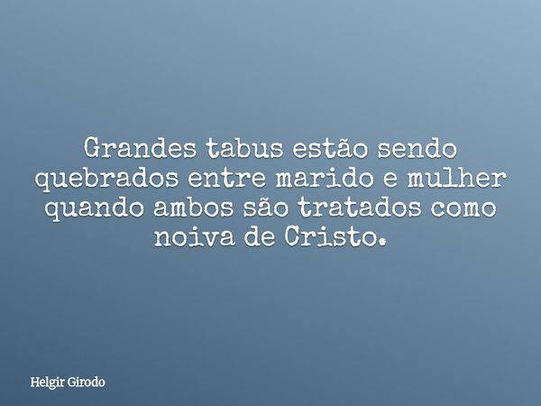 Grandes tabus estão sendo quebrados entre marido e mulher quando ambos são tratados como noiva de Cristo.