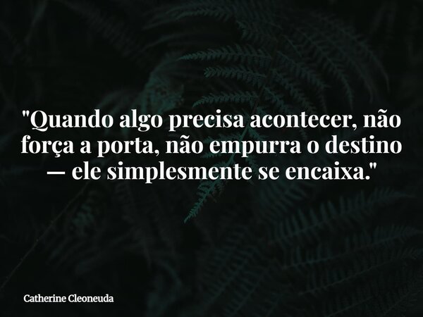 "Quando algo precisa acontecer, não força a porta, não empurra o destino — ele simplesmente se encaixa."