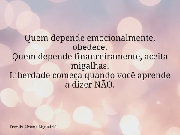 Quem depende emocionalmente, obedece. Quem depende financeiramente, aceita migalhas. Liberdade começa quando você aprende a dizer NÃO.