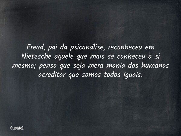 Freud, pai da psicanálise, reconheceu em Nietzsche aquele que mais se conheceu a si mesmo; penso que seja mera mania dos humanos acreditar que somos todos iguais.