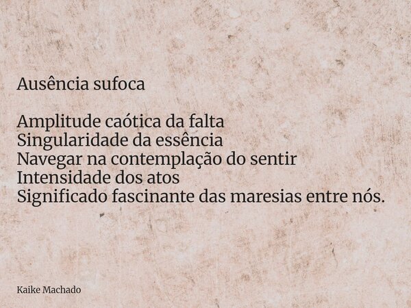 Ausência sufoca Amplitude caótica da falta Singularidade da essência Navegar na contemplação do sentir Intensidade dos atos Significado fascinante das maresias entre nós.
