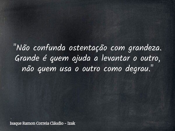 "Não confunda ostentação com grandeza. Grande é quem ajuda a levantar o outro, não quem usa o outro como degrau."