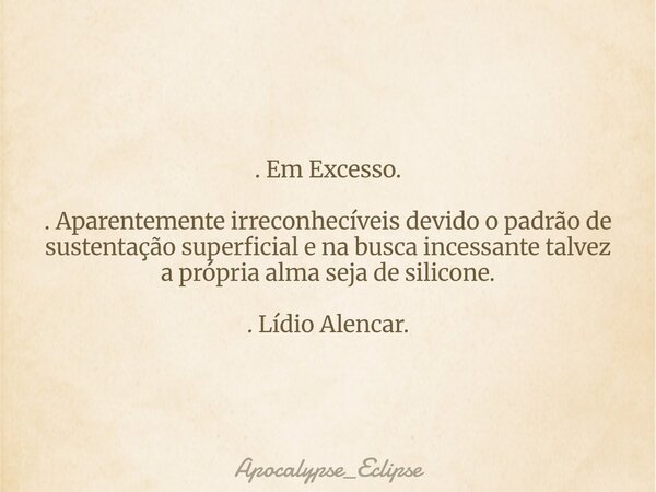 . Em Excesso. . Aparentemente irreconhecíveis devido o padrão de sustentação superficial e na busca incessante talvez a própria alma seja de silicone. . Lídio Alencar.
