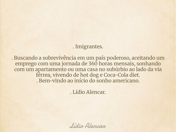 . Imigrantes.. Buscando a sobrevivência... Lídio Alencar