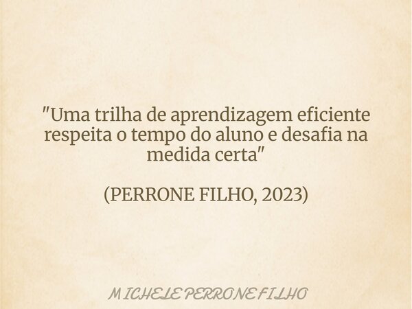 "Uma trilha de aprendizagem eficiente respeita o tempo do aluno e desafia na medida certa" (PERRONE FILHO, 2023)