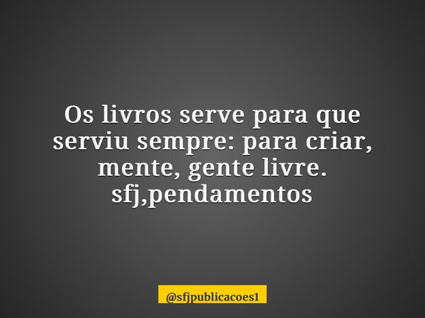 Os livros serve para que serviu sempre: para criar, mente, gente livre. sfj,pendamentos