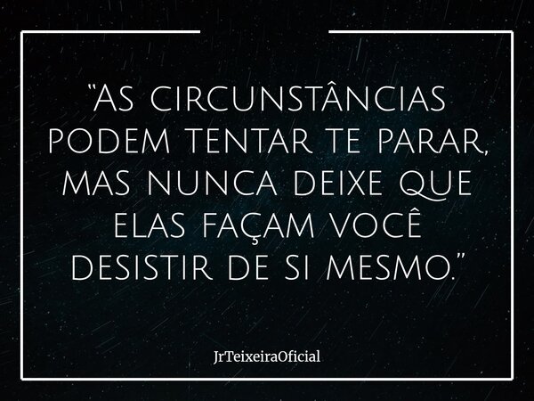 “As circunstâncias podem tentar te parar, mas nunca deixe que elas façam você desistir de si mesmo.”