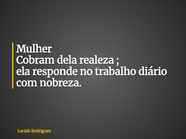 Mulher Cobram dela realeza ; ela responde no trabalho diário com nobreza.