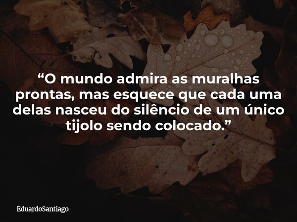 “O mundo admira as muralhas prontas, mas esquece que cada uma delas nasceu do silêncio de um único tijolo sendo colocado.”