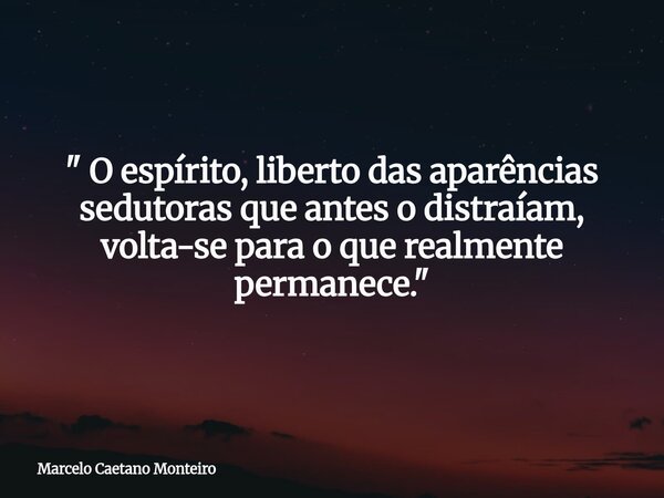 " O espírito, liberto das aparências sedutoras que antes o distraíam, volta-se para o que realmente permanece. "