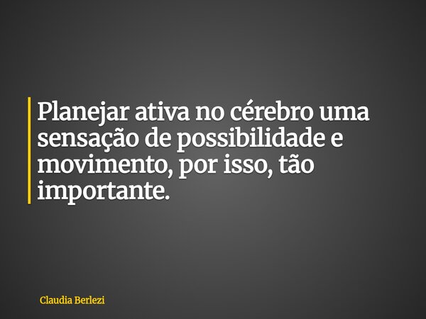 Planejar ativa no cérebro uma sensação de possibilidade e movimento, por isso, tão importante.