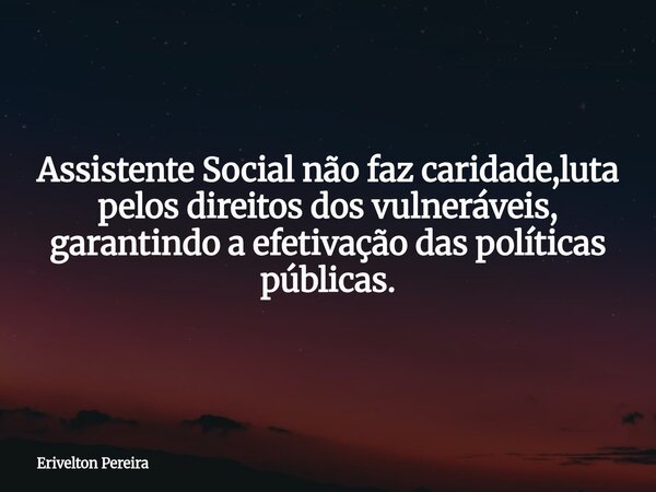 Assistente Social não faz caridade,luta pelos direitos dos vulneráveis, garantindo a efetivação das políticas públicas.