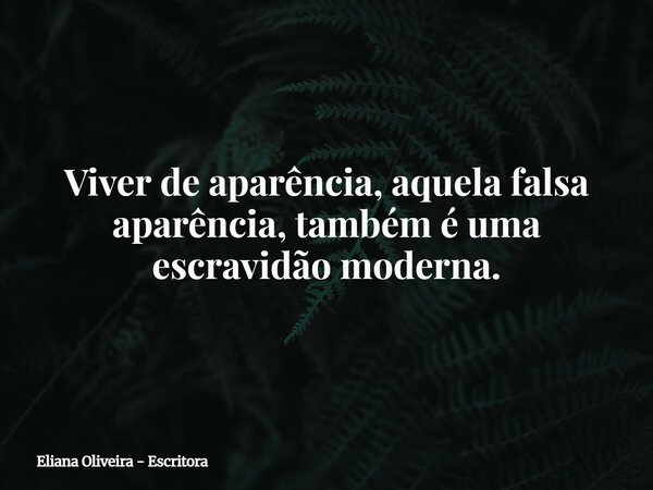 Viver de aparência, aquela falsa aparência, também é uma escravidão moderna.