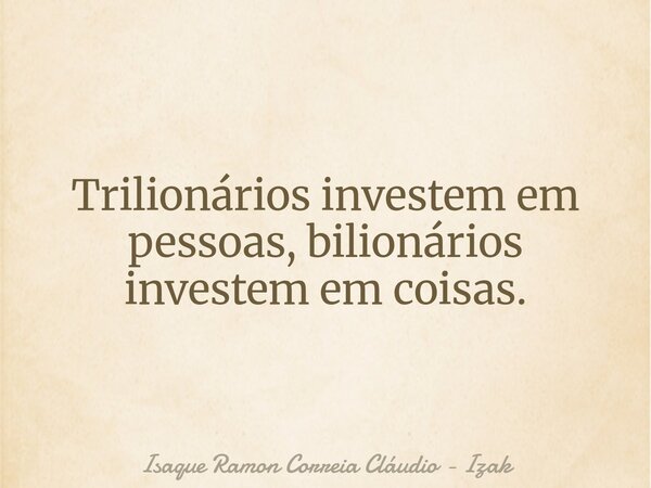 Trilionários investem em pessoas, bilionários investem em coisas.