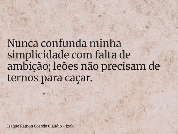 Nunca confunda minha simplicidade com falta de ambição; leões não precisam de ternos para caçar.