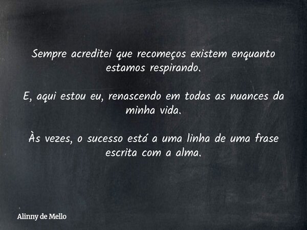 Sempre acreditei que recomeços existem... Alinny de Mello