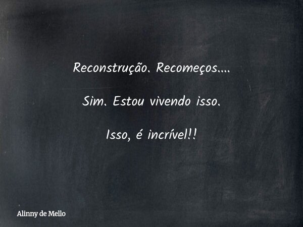 Reconstrução. Recomeços.... Sim. Estou vivendo isso. Isso, é incrível!!