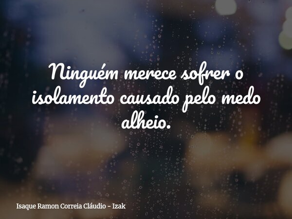 Ninguém merece sofrer o isolamento causado pelo medo alheio.