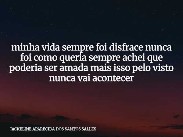 minha vida sempre foi disfrace nunca foi como queria sempre achei que poderia ser amada mais isso pelo visto nunca vai acontecer
