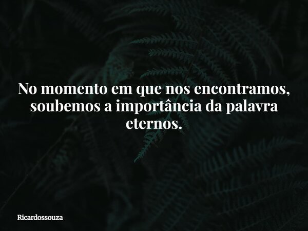 No momento em que nos encontramos, soubemos a importância da palavra eternos.