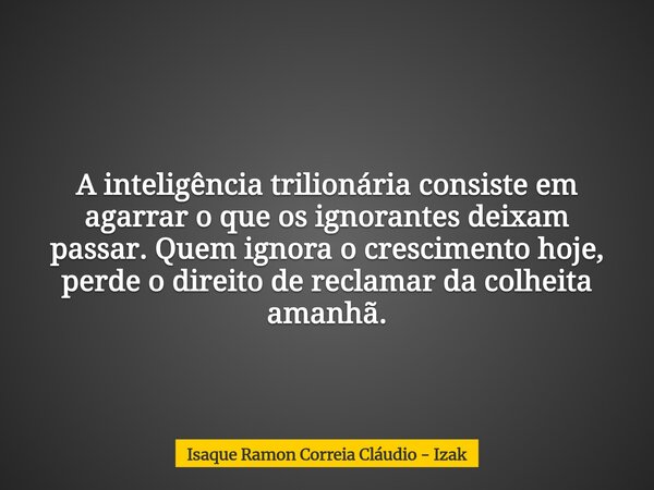 A inteligência trilionária consiste em agarrar o que os ignorantes deixam passar. Quem ignora o crescimento hoje, perde o direito de reclamar da colheita amanhã.