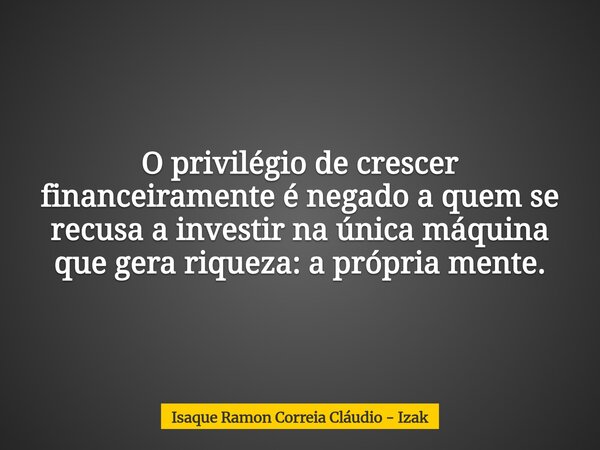 O privilégio de crescer financeiramente é negado a quem se recusa a investir na única máquina que gera riqueza: a própria mente.