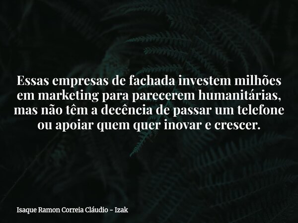 Essas empresas de fachada investem milhões em marketing para parecerem humanitárias, mas não têm a decência de passar um telefone ou apoiar quem quer inovar e crescer.