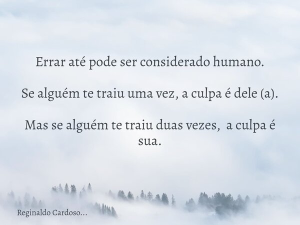 Errar até pode ser considerado humano. Se alguém te traiu uma vez, a culpa é dele (a). Mas se alguém te traiu duas vezes, a culpa é sua.