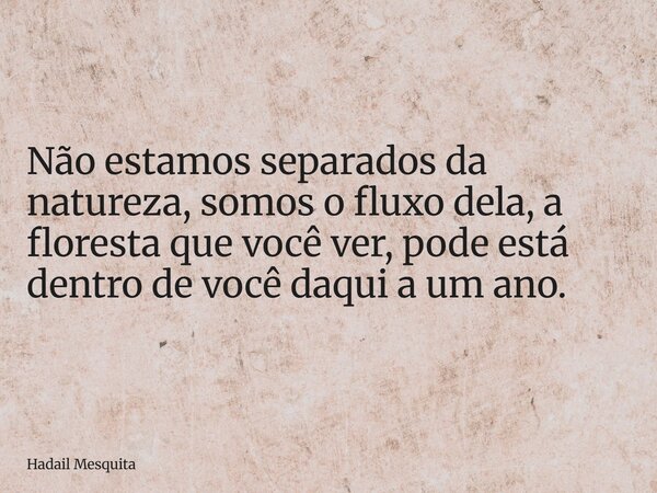 Não estamos separados da natureza, somos o fluxo dela, a floresta que você ver, pode está dentro de você daqui a um ano.