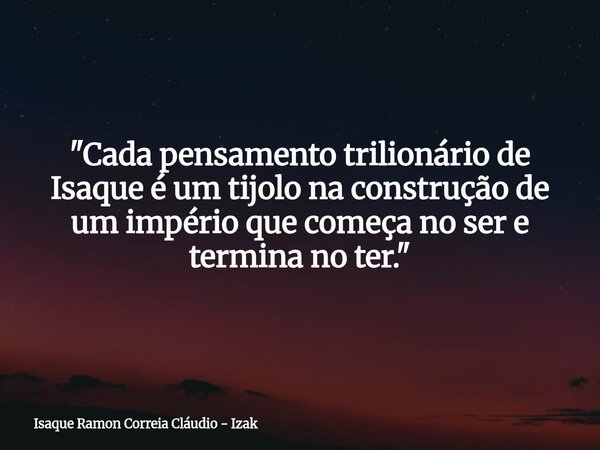 "Cada pensamento trilionário de Isaque é um tijolo na construção de um império que começa no ser e termina no ter."