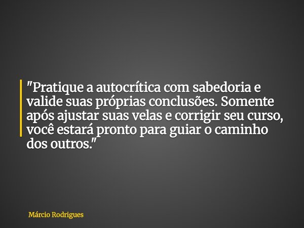 "Pratique a autocrítica com sabedoria e valide suas próprias conclusões. Somente após ajustar suas velas e corrigir seu curso, você estará pronto para guiar o caminho dos outros."