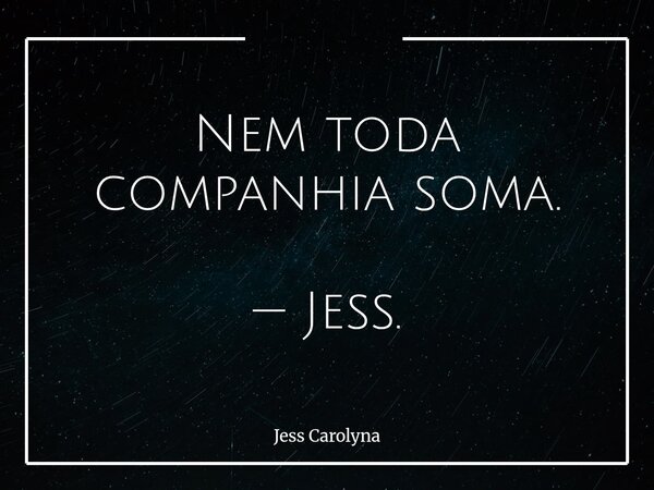 Nem toda companhia soma. — Jess.