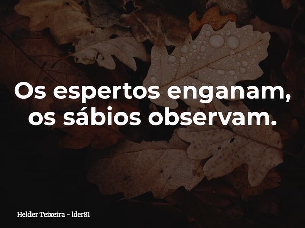 Os espertos enganam, os sábios observam.