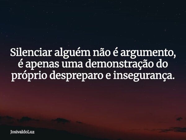 Silenciar alguém não é argumento, é apenas uma demonstração do próprio despreparo e insegurança.
