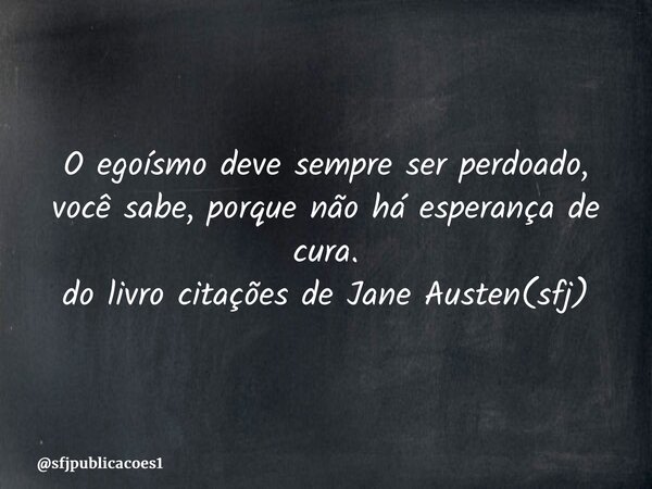 O egoísmo deve sempre ser perdoado, você sabe, porque não há esperança de cura. do livro citações de Jane Austen(sfj)