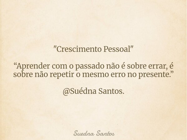 "Crescimento Pessoal" “Aprender com o passado não é sobre errar, é sobre não repetir o mesmo erro no presente.” @Suédna Santos.
