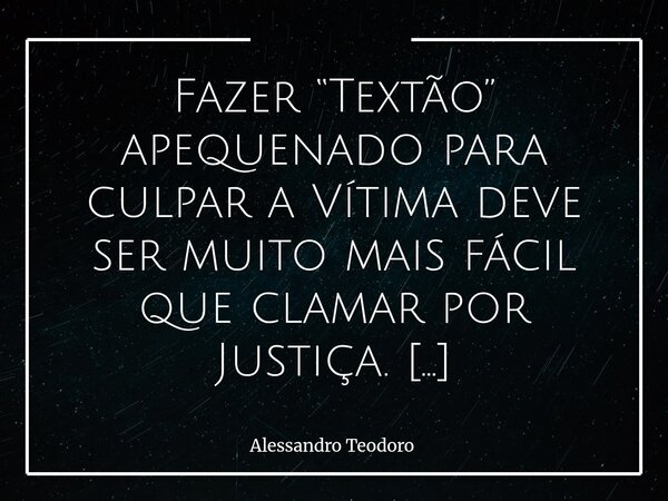 Fazer “Textão” apequenado para culpar a Vítima deve ser muito mais fácil que clamar por Justiça.