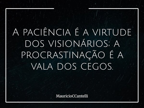 A paciência é a virtude dos visionários; a procrastinação é a vala dos cegos.