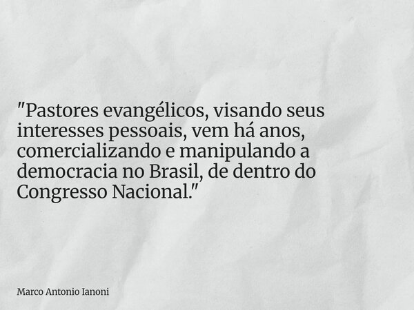 "Pastores evangélicos, visando seus interesses pessoais, vem há anos, comercializando e manipulando a democracia no Brasil, de dentro do Congresso Nacional."