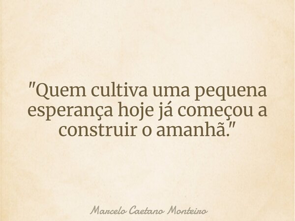 "Quem cultiva uma pequena esperança hoje já começou a construir o amanhã."