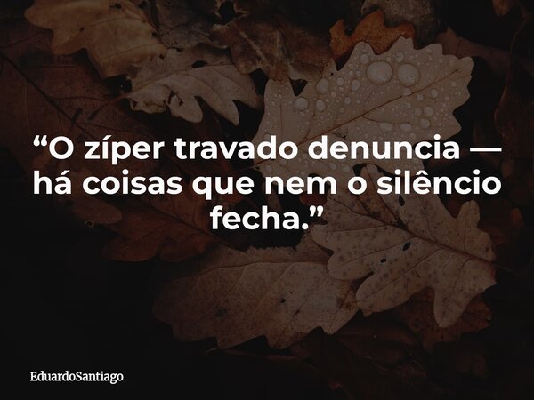 “O zíper travado denuncia — há coisas que nem o silêncio fecha.”