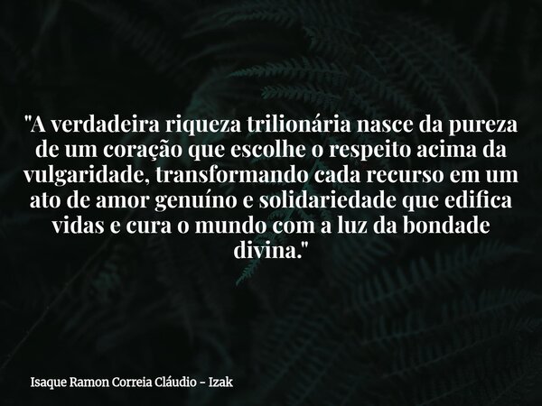 "A verdadeira riqueza trilionária nasce da pureza de um coração que escolhe o respeito acima da vulgaridade, transformando cada recurso em um ato de amor genuíno e solidariedade que edifica vidas e cura o mundo com a luz da bondade divina."