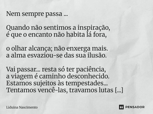 Nem sempre passa... Quando não sentimos... Liduina Nascimento