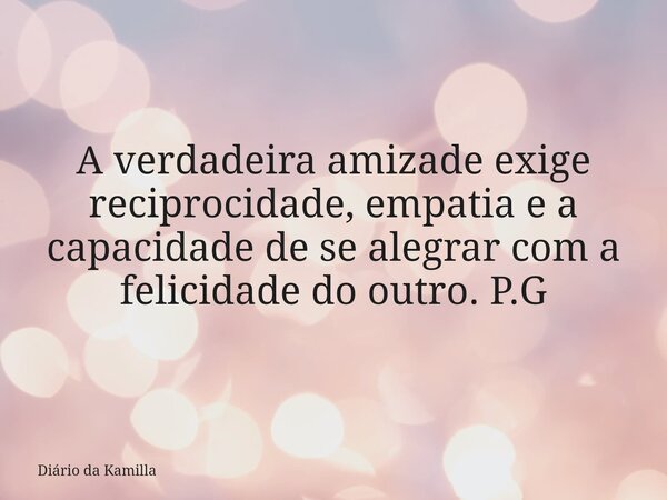 A verdadeira amizade exige reciprocidade, empatia e a capacidade de se alegrar com a felicidade do outro.P.G